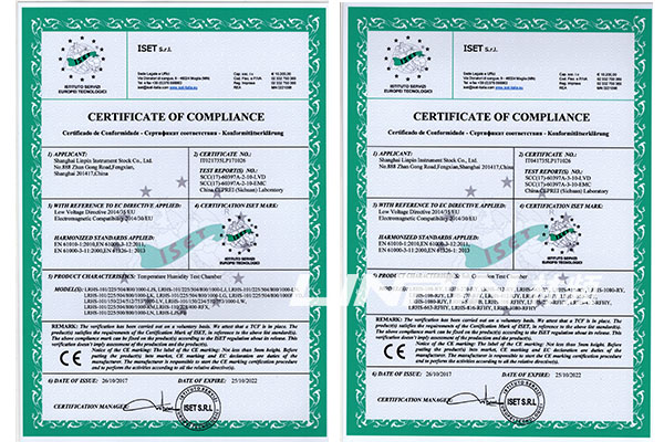 CE認證是產品進入歐盟市場所必須的安全認證,林頻儀器為順應歐盟市場需求,擴大設備出口能力,經過公司員工的共同努力,在技術儲備和管理工作進行系統(tǒng)完善后,公司順利通過歐盟CE認證證書。CE證書的獲得驗證了林頻儀器生產的環(huán)境試驗箱已經達到歐盟指令規(guī)定的要求,是企業(yè)對用戶的一種承諾,增加了用戶對設備的信任程度,在質量性能和安全性能方面都符合歐盟國家的出口質量標準,為公司大力開拓國際市場奠定了良好的基礎。